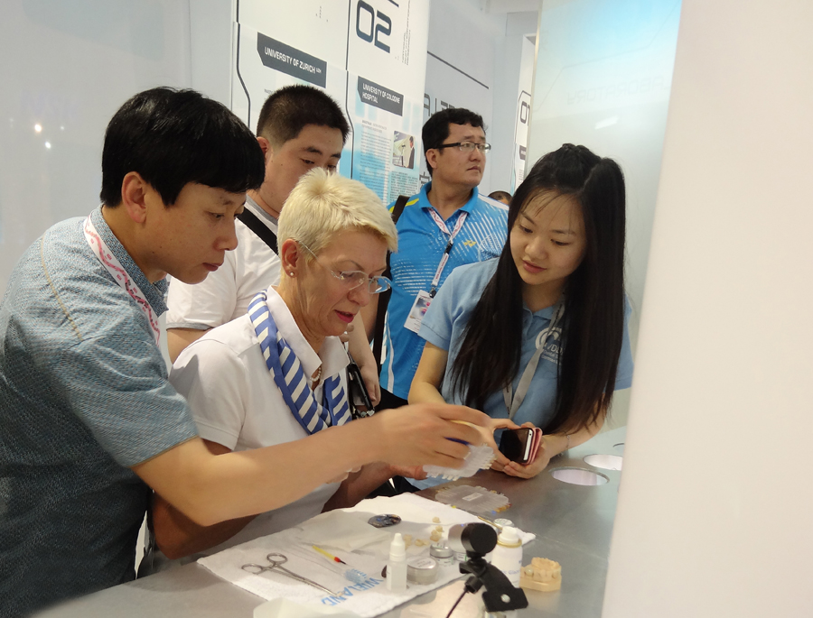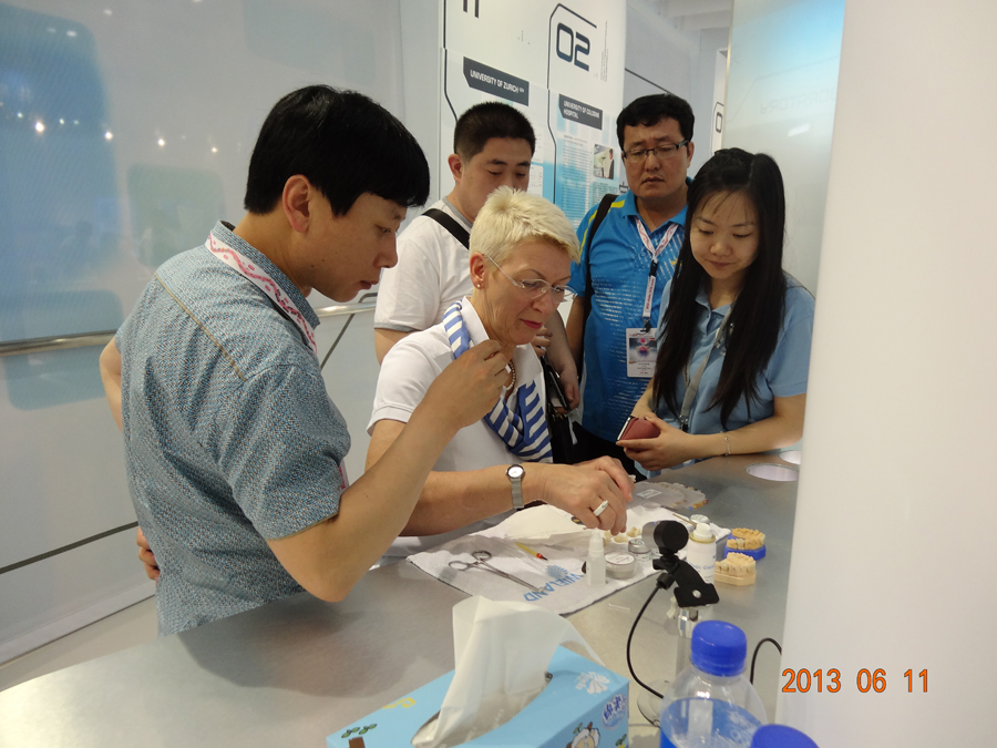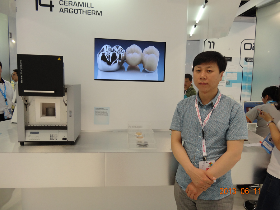 陈岩院长和德国技师交流美容牙冠的制作