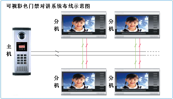 可视彩色门禁对讲系统布线示意图